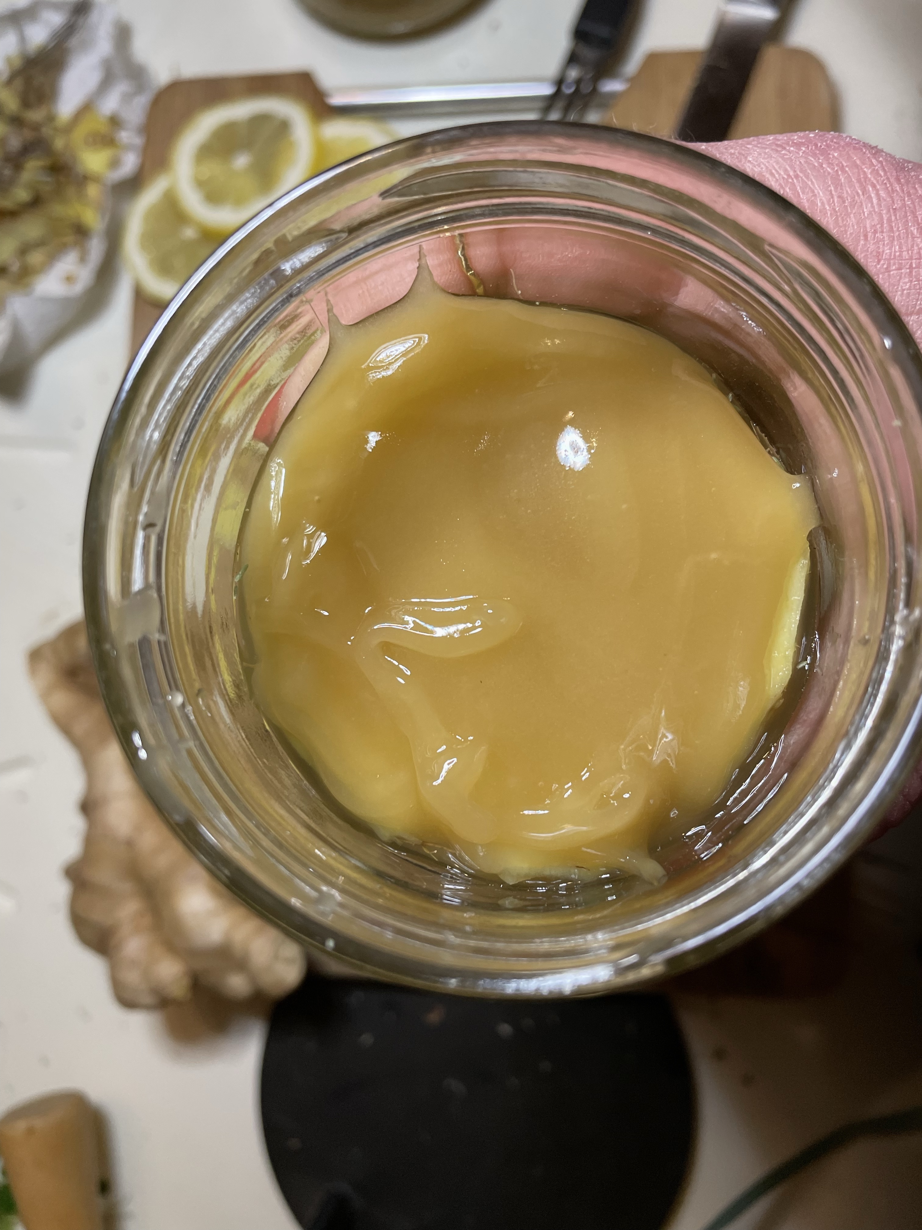 La texture épaisse du miel va devenir de plus en plus fluide grâce au jus de citron qui va se mélanger. Il ne faut pas hésiter à secouer le pot pour aider à homogénéiser et récupérer les bienfaits de tous les ingrédients.